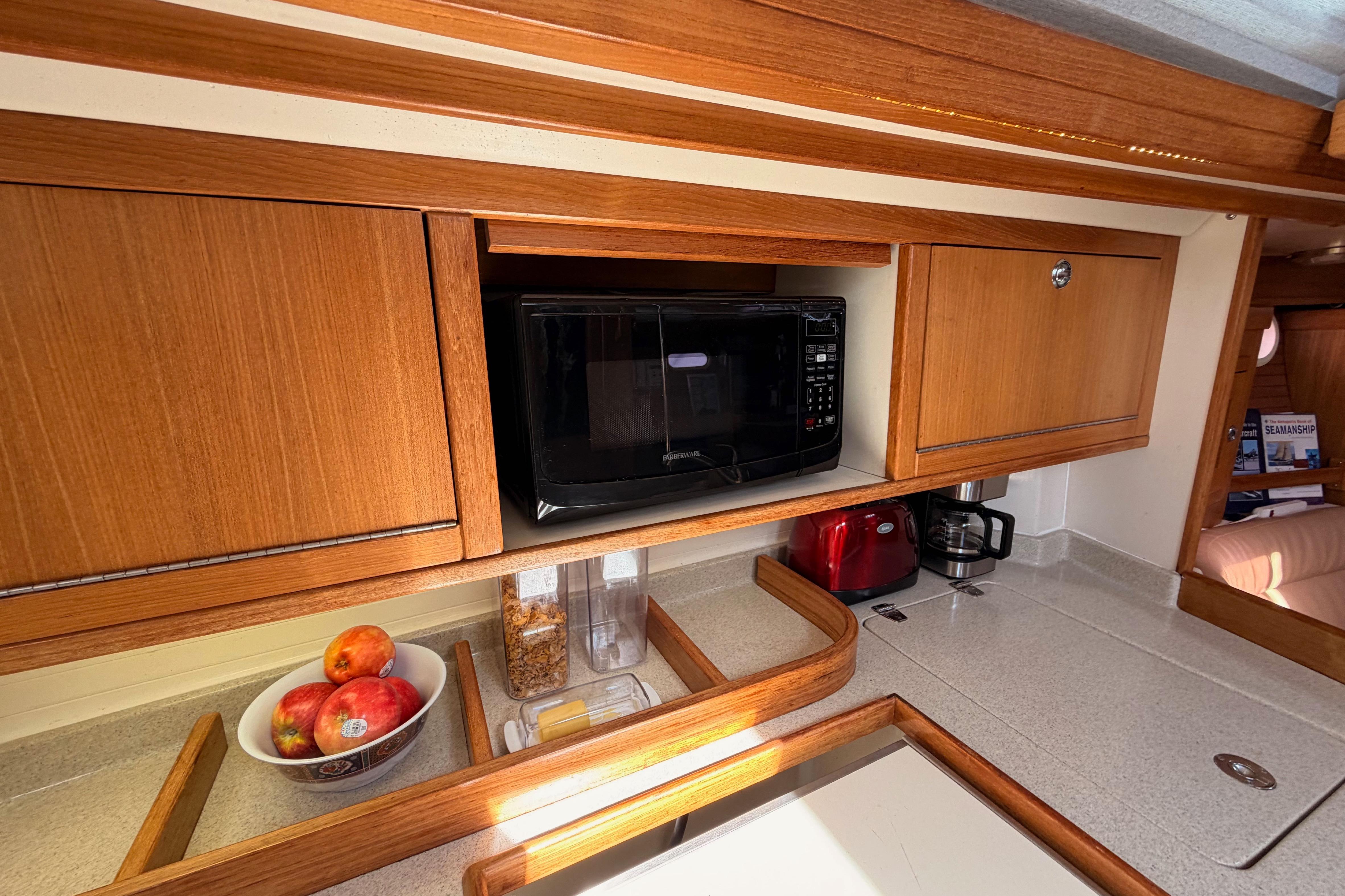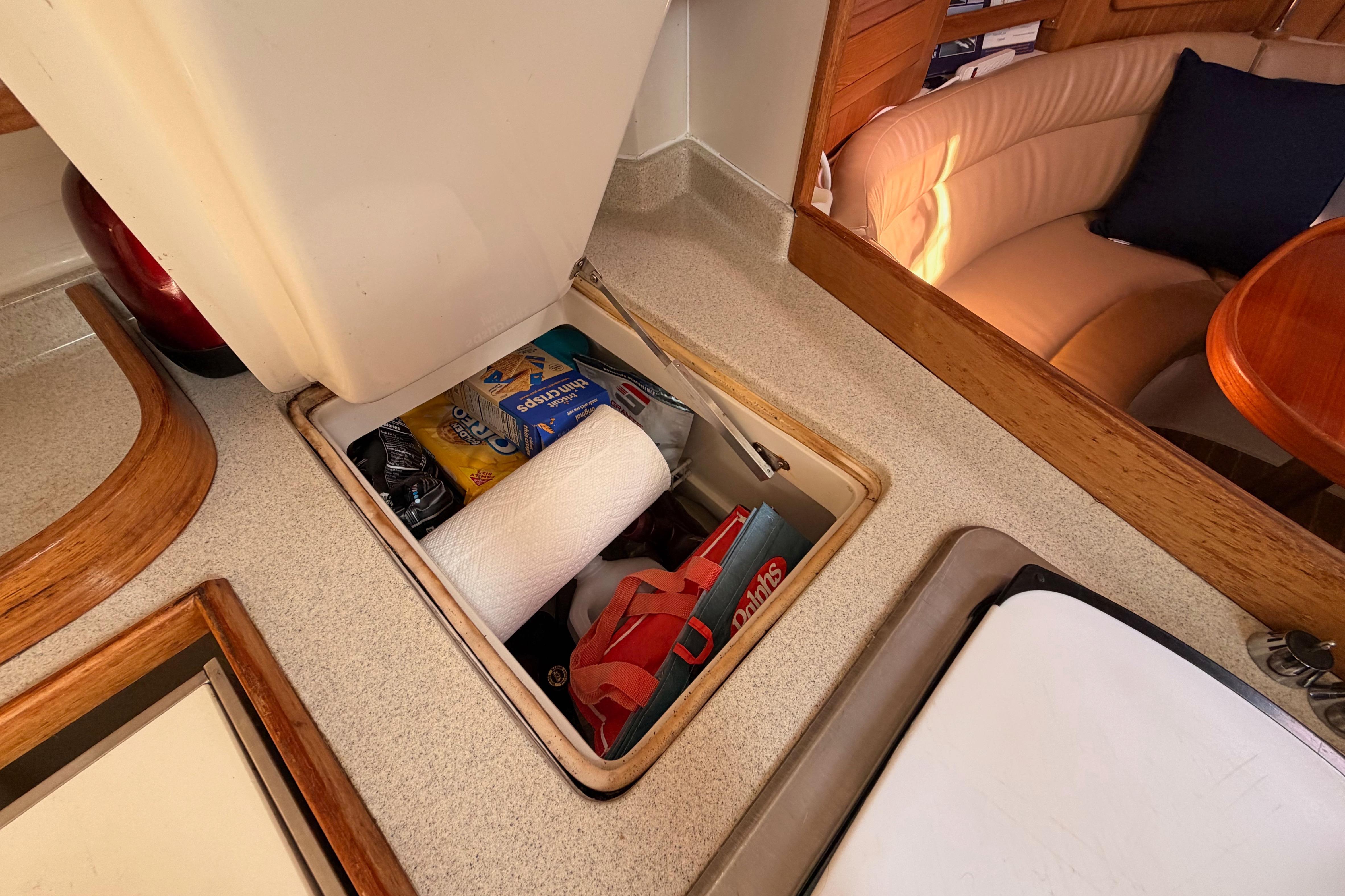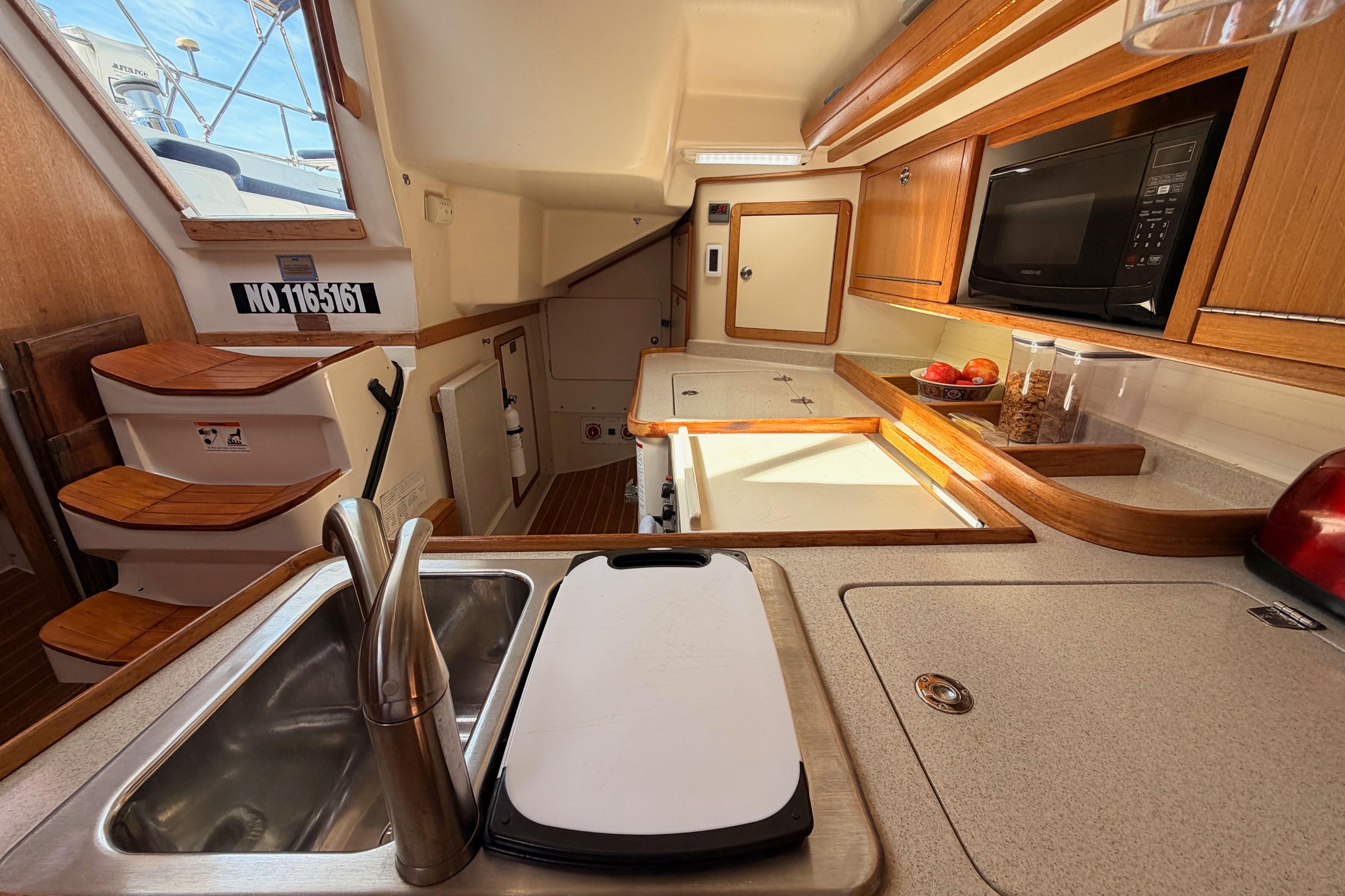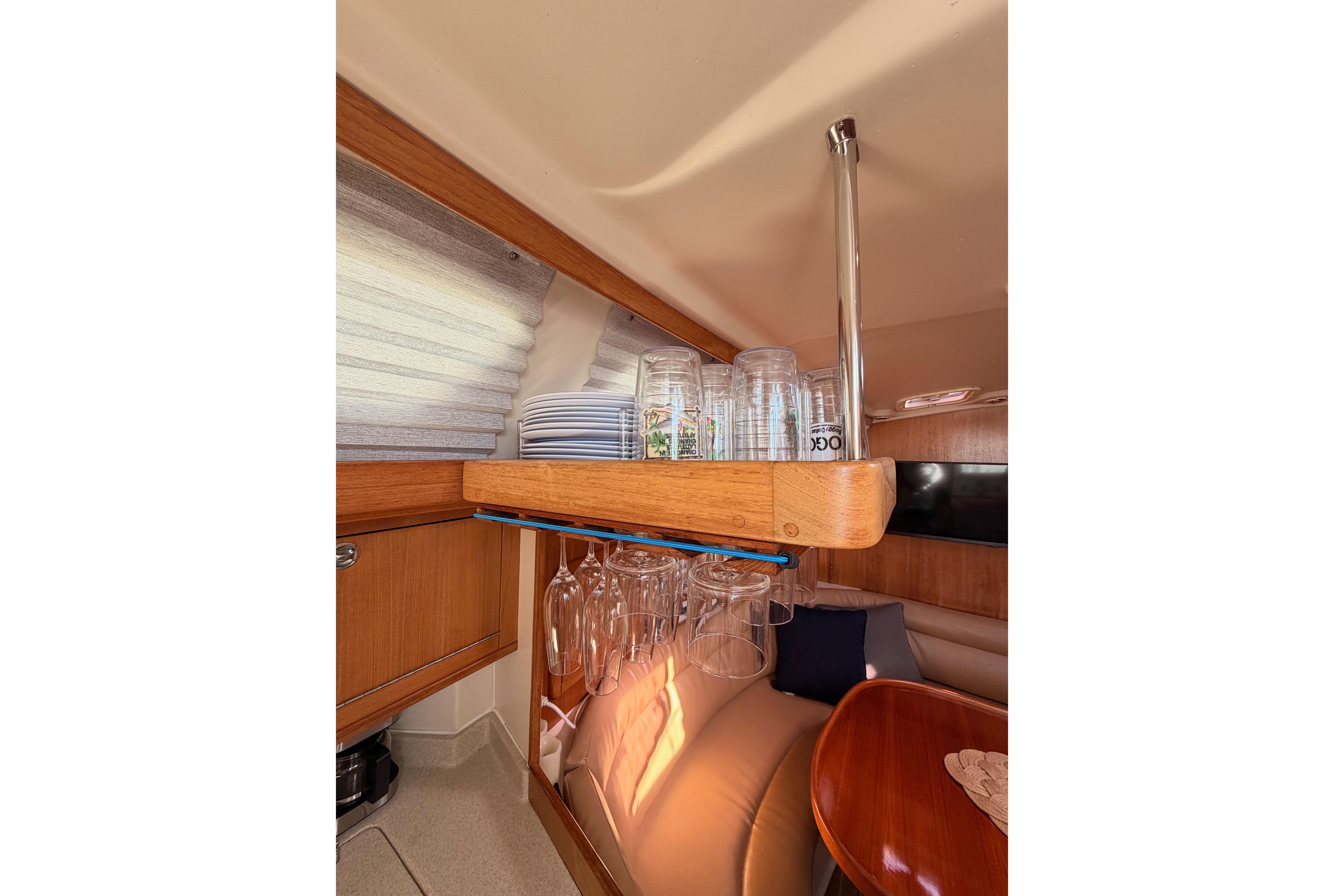 - Ample storage: There is plentiful storage below deck, including the owner\'s cabin and galley.