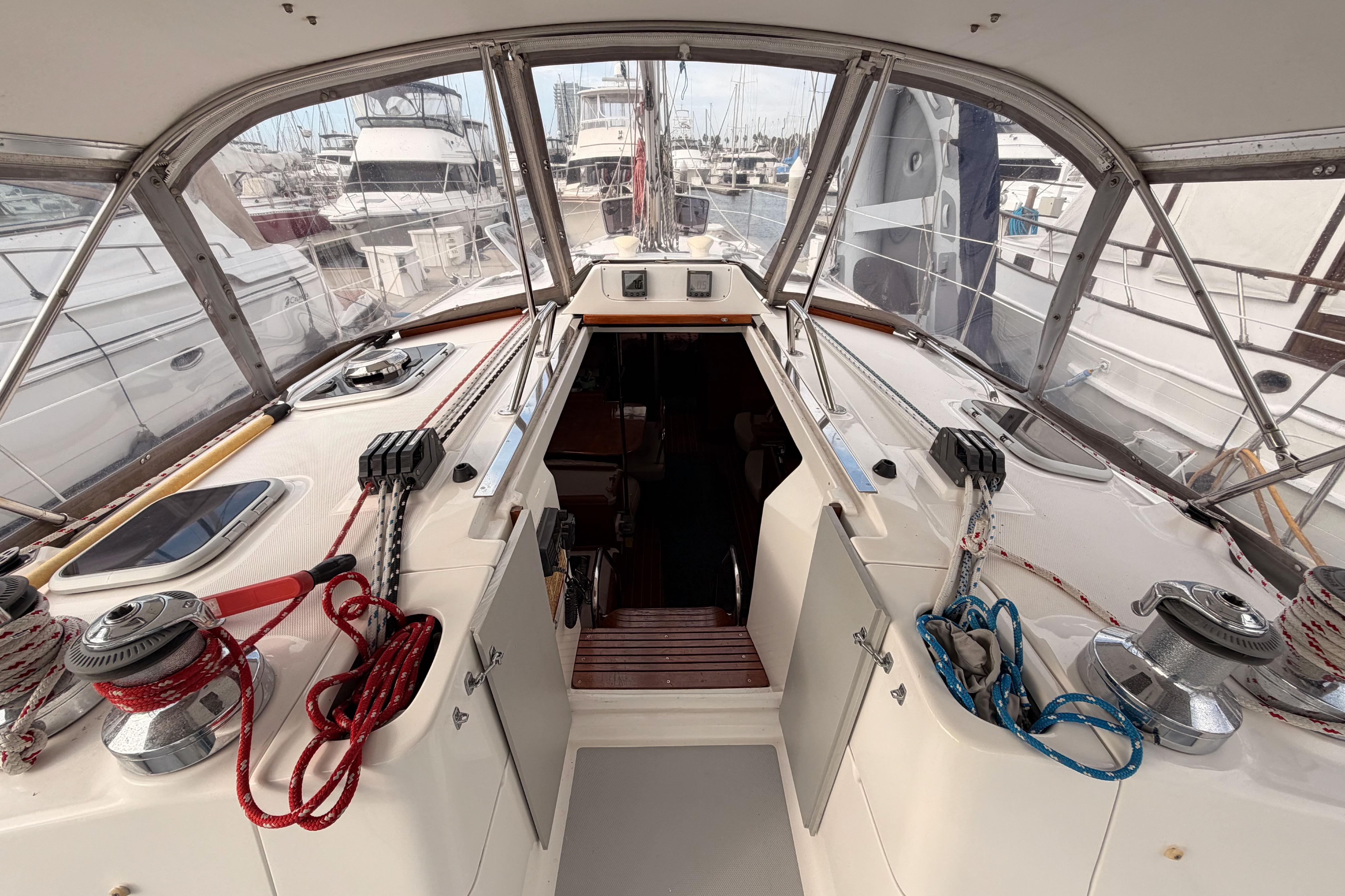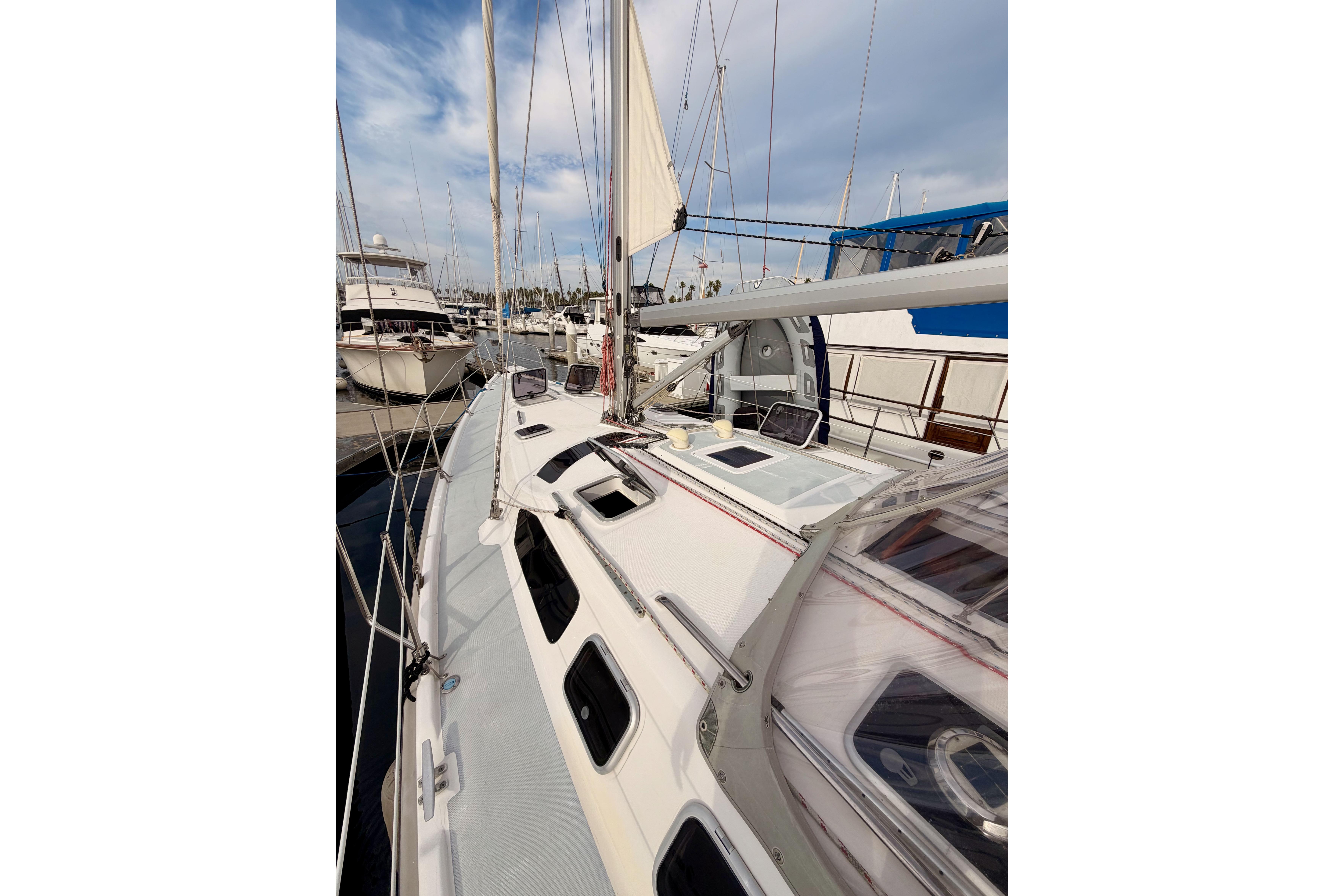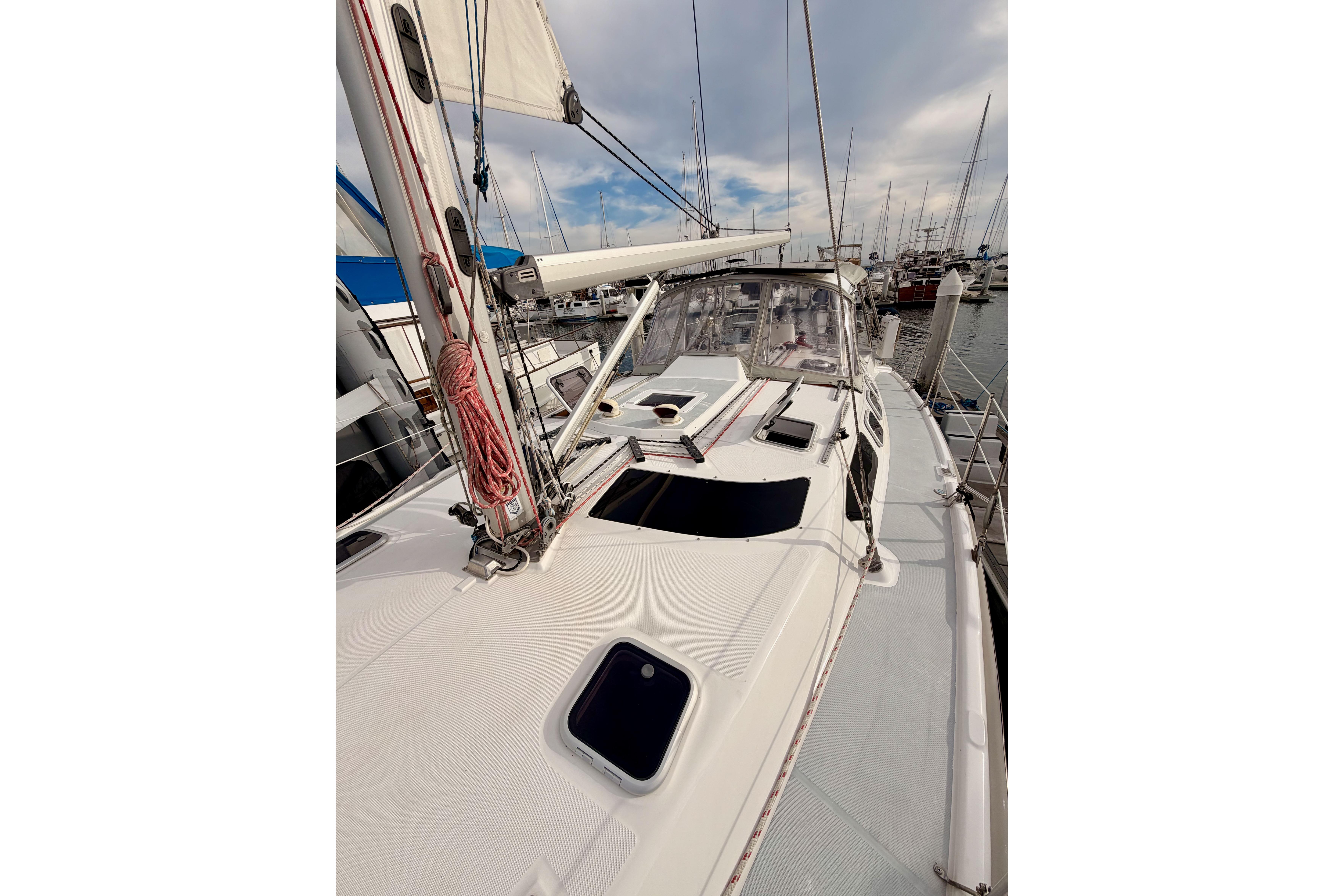 - Performance: While not considered a bluewater cruiser by some, it sails well and can reach speeds of 8-9 knots. The in-mast furling main is easy to handle.