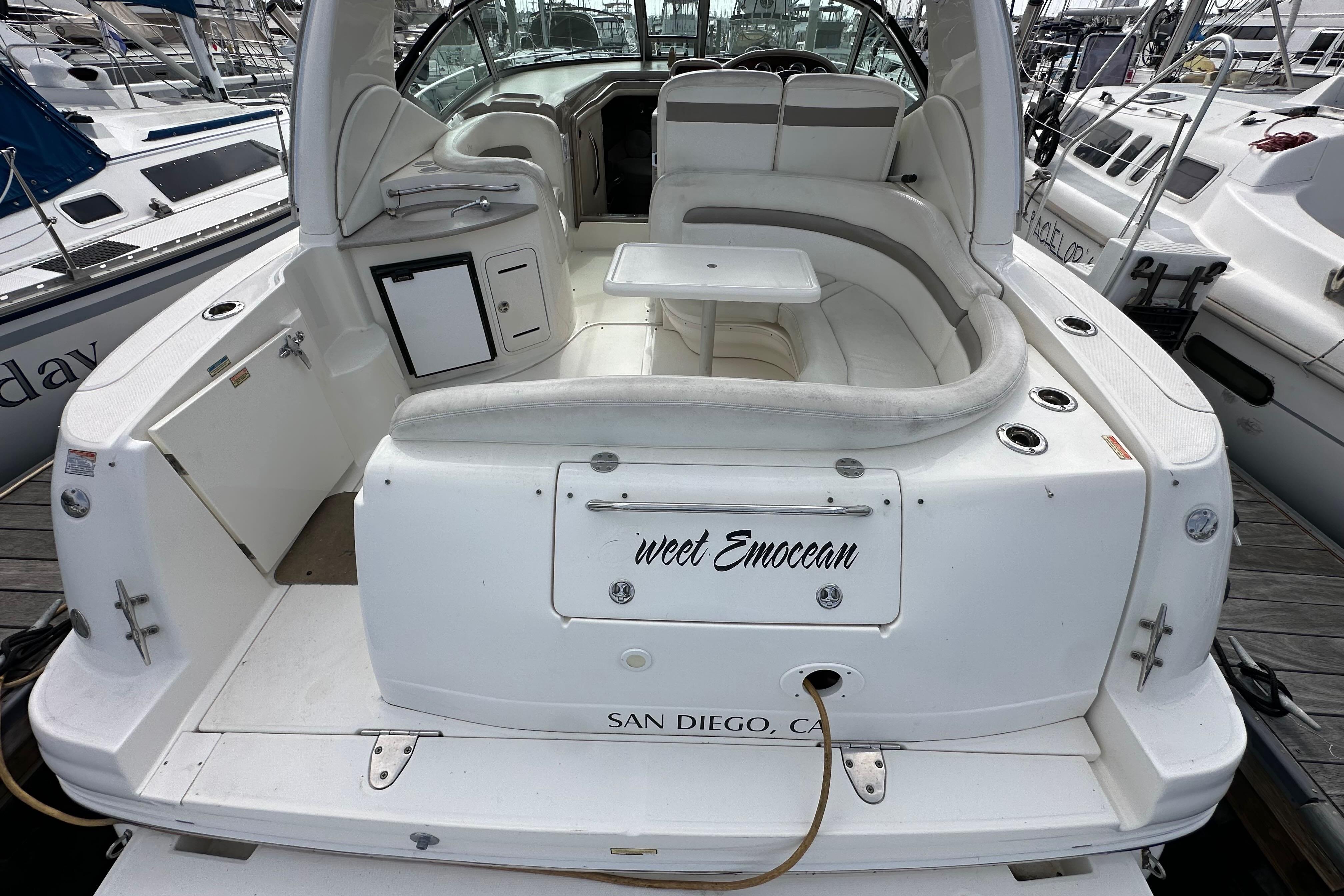 & user friendly helm and large aft sundeck with built-in wet bar!! In other words, she is the perfect express cruiser to enjoy with friends and family.