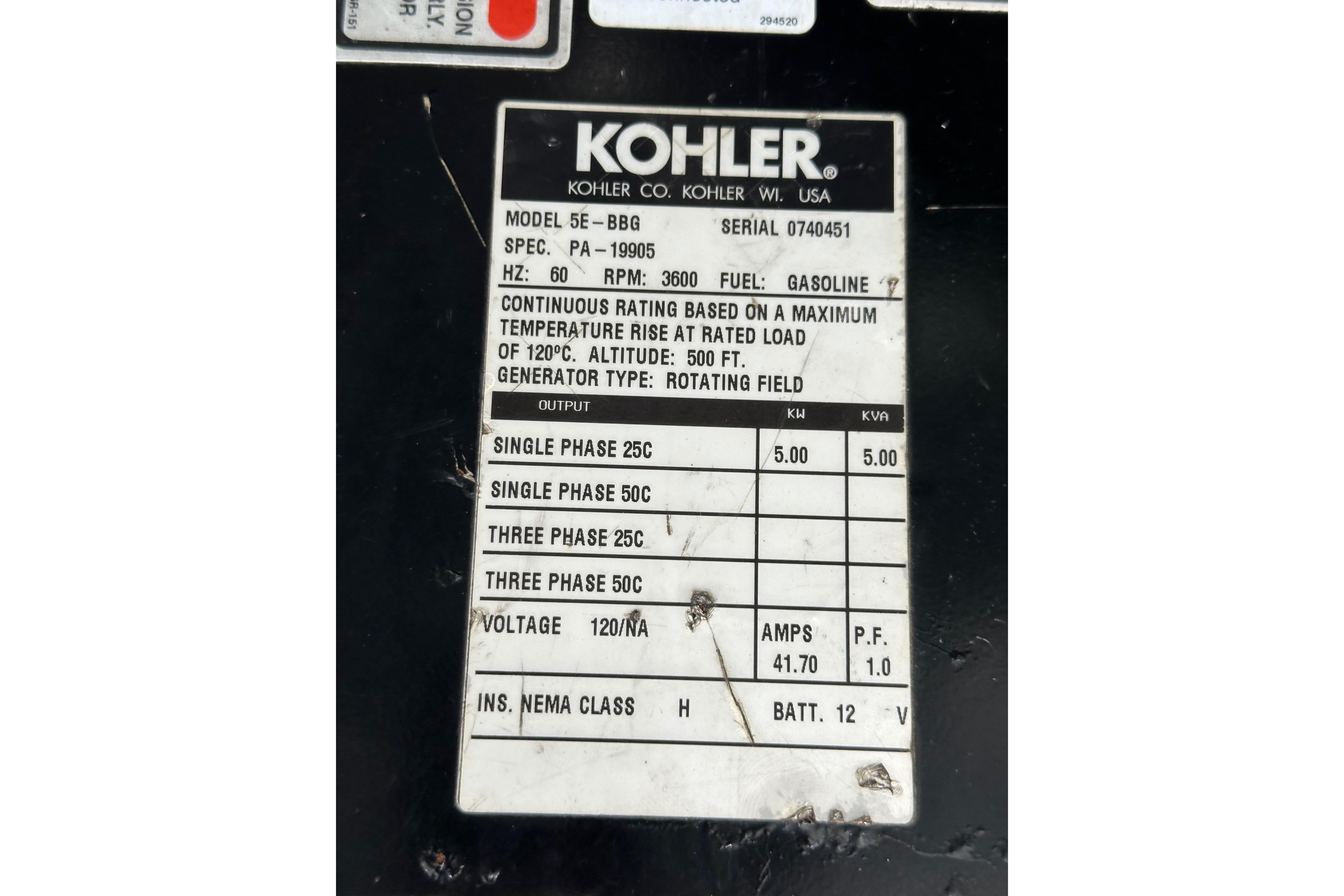 - Kohler 5kw Generator with only 302 hours